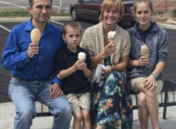 Na ławce obok parkingu siedziała szczęśliwa rodzina: ojciec, matka i dwoje uroczych dzieci. Joyce tak się nimi zachwyciła, że poprosiła o zgodę na zrobienie zdjęcia.