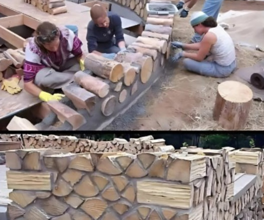 Żadnych cegieł, betonu, materiałów przemysłowych. Tylko drewno opałowe, ziemia, kamienie i mnóstwo kreatywności. Ta metoda budowy, zwana „cordwood”, opiera się na prostej zasadzie: układa się kłody jak cegły i uszczelnia je zaprawą glinianą.