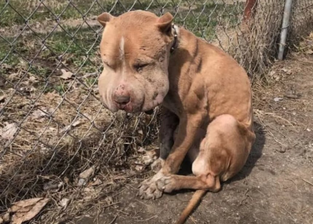 Lina na jego szyi wbiła się tak głęboko w skórę, że pozostawiła rany bólu i zaniedbania – blizny świadczące o cichym cierpieniu. Twarz miał opuchniętą, ciało drżało, a oczy zamglone wyczerpaniem i smutkiem.