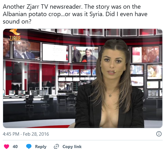 Prezenterki wiadomości przekazywały najnowsze wiadomości ubrane w rozpięte żakiety i nie miały niczego pod spodem. Wywołało to spore poruszenie w małym i konserwatywnym kraju na Bałkanach jakim jest Albania.