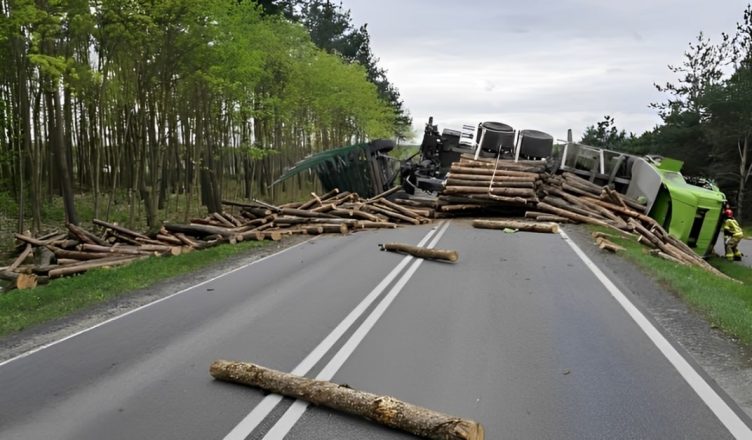 Drogowy horror rozegrał się w piątek, 12 kwietnia w miejscowości Mokre. Tuż za skrzyżowaniem ciężarówka zderzyła się z fordem. Kolos z przyczepą, przewrócił się na bok. Na drogę rozsypały się przewożone kłody drewna. Osobowy ford wpadł do rowu.