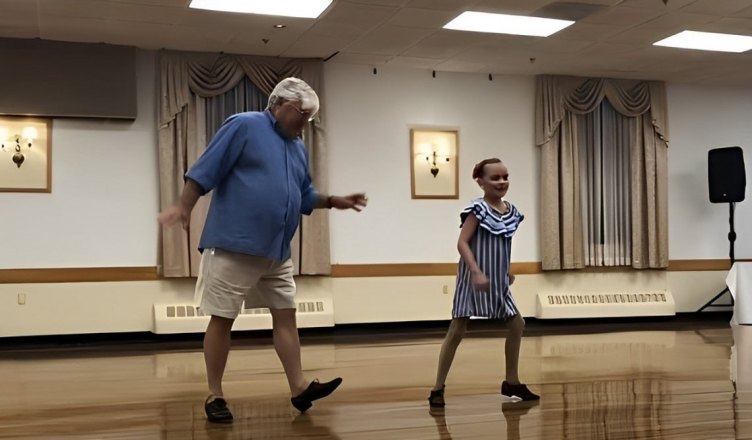 Dziesięcioletnia Maeve poprosiła dziadka, aby towarzyszył jej w recitalu stepowania.